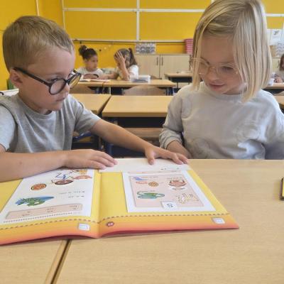 1ste leerjaarKlasfotoWelkom in het 1ste leerjaarWij zijn klaar om te leren lezen, schrijven, rekenen,de wereld rondom ons te ontdekken,te knutselen, te zingen en nog veel meer...Wij maken er allemaal samen een leuk en leerrijk schooljaar van!Sfeerfoto's